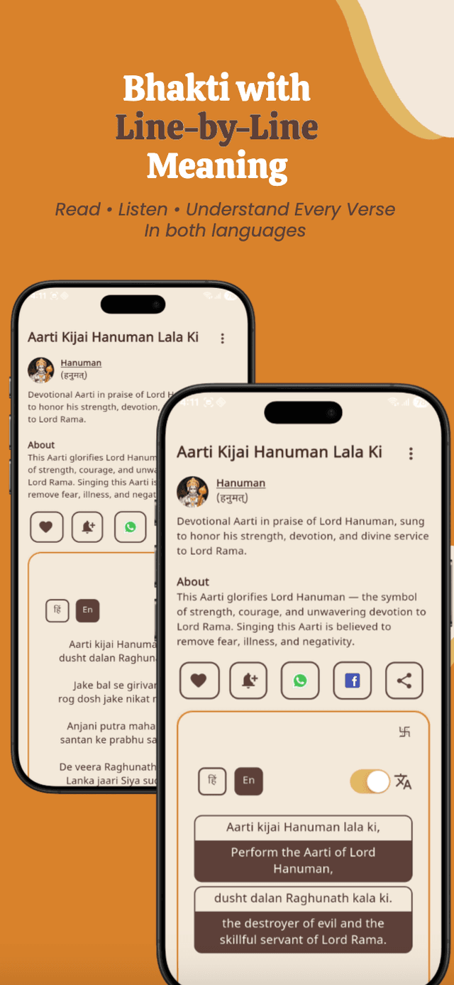 Access 1000+ Aartis, Chalisas, Bhajans, & Stotras in both Hindi & English language.